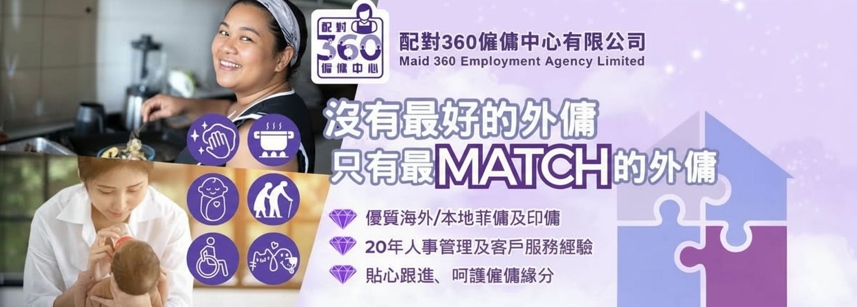 品牌核心理念:僱主與外傭之間的關係就像一塊拼圖,彼此需找到最契合的形狀,才能共同完成整幅美麗的圖畫。
